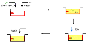 ELISA的基礎是抗原或抗體的固相化及抗原或抗體的酶標記。結合在固相載體表面的抗原或抗體仍保持其免疫學活性,酶標記的抗原或抗體既保留其免疫學活性,又保留酶的活性。在測定時,受檢標本(測定其中的抗體或抗原)與固相載體表面的抗原或抗體起反應。用洗滌的方法使固相載體上形成的抗原抗體復合物與液體中的其他物質分開。再加入酶標記的抗原或抗體,也通過反應而結合在固相載體上。此時固相上的酶量與標本中受檢物質的量呈一定的比例。加入酶反應的底物后,底物被酶催化成為有色產物,產物的量與標本中受檢物質的量直接相關,故可根據呈色的深淺進行定性或定量分析。由于酶的催化效率很高,間接地放大了免疫反應的結果,使測定方法達到很高的敏感度。
