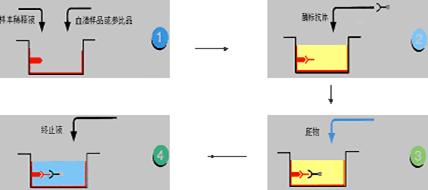 雙抗體夾心法是檢測抗原最常用的方法,操作步驟如下: