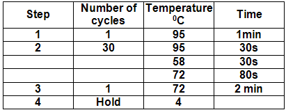 12.Program and run the thermocycler (PCR machine) using the following parameters.