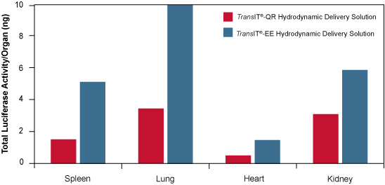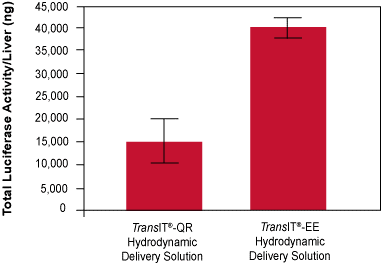 TransIT®-EE 溶液可增強肝臟中熒光素酶的表達。