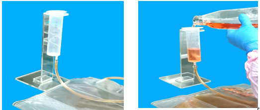 【使用方法】 1、拆除細胞袋外包裝袋,將細胞袋長管螺旋帽處用酒精棉球消毒再打開,將無菌注射器(取出內栓)直接連接管口并鎖緊,注射器管固定于試管架; 2、培養瓶懸空將細胞培養物緩慢倒入注射器內,轉袋完畢后用酒精棉球擦干殘留液體并消毒管口,旋緊螺旋帽,同時綠色管夾夾閉進樣管管道; 3、擴大培養過程中,需要抽取細胞液時將細胞袋中間短管管帽用消毒的鑷子拔開,用無菌注射器抽取培養液,完畢后消毒管口并蓋好管帽; 4、培養過程中需添加細胞因子及營養成分時,可通過取樣短管加入,操作按 3 執行; 5、擴大培養過程中,補液時需將長管及管口全部消毒,將培養基瓶中的培養基懸空緩慢加入,加入完畢用酒精棉球擦干殘留液體并消毒管口,蓋好螺旋帽; 6、關閉管夾,將細胞培養袋平整放置于托盤中,移至細胞培養箱中培養; 7、細胞回收時,先將長管及管口全部消毒,將細胞袋懸掛在生物安全柜的掛鉤上,擰去長管道螺旋蓋或者用無菌的剪刀剪斷長管,用鑷子夾住長管對著離心杯,再放開管夾進行細胞培養物收集。 【注意事項】 1、所有的工作必須在無菌室中進行,請遵守嚴格無菌的工作規范,使用無菌耗材。 2、細胞培養袋為一次性使用耗材,請在有效期內使用,請勿重復使用。 3、為避免機械性破壞,嚴防培養箱隔板刮傷細胞袋。 4、為防止污染,培養袋長管的管帽擰開時需倒置放在桌子上,管口勿接觸其它物品或操作臺面。 5、為防止污染,細胞培養液瓶轉袋或補液過程中,管口有殘留液體的,必須用酒精棉球擦干消毒再蓋好蓋子。 6、使用一次性注射器抽取樣時,請勿刺破細胞培養袋,并注意生物安全。 【產品有效期】 本品未開封有效期為 36 個月,開封后立刻使用。
